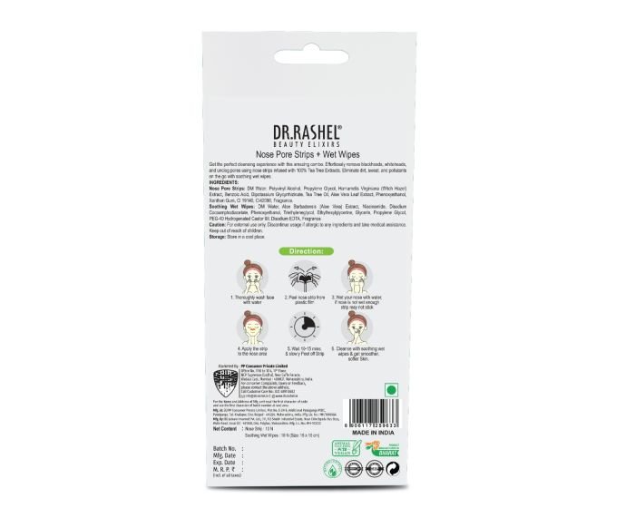 Dr. Rashel Beauty Elixirs Nose Pore Strips with Vitamin C and Tea Tree extract are designed to remove blackheads, excess oil, and impurities from the pores. Vitamin C helps brighten and even out skin tone, while Tea Tree provides antibacterial care to prevent breakouts. These strips leave your nose visibly cleaner, smoother, and refreshed. Includes 10 easy-to-use strips for weekly pore care.
