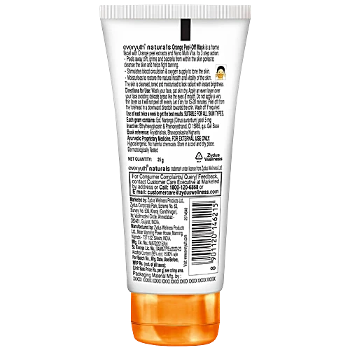 Everyuth orange peel face wash; a home facial treatment designed to cleanse, tone, and moisturize the skin with a unique triple-action formula containing orange peel extract and Nano Multi-Vita