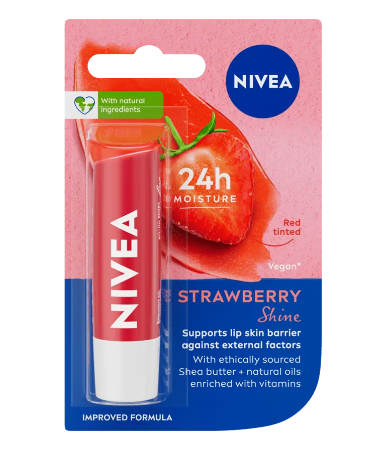 Nivea Strawberry Shine 24h Caring Lip Balm offers long-lasting hydration while giving your lips a natural, soft pink tint. Infused with shea butter and natural strawberry extract, it nourishes and protects your lips, keeping them smooth and moisturized for up to 24 hours. The balm’s creamy texture glides on easily, leaving a subtle fruity scent. Perfect for everyday use, it provides both care and a touch of color, keeping your lips soft and fresh all day long.