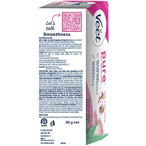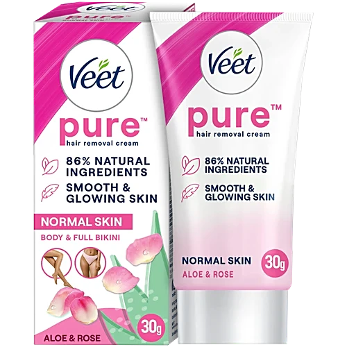 Veet Pure Hair Removal Cream Organic Aloe Vera & Rose Extracts Normal Skin (30g)