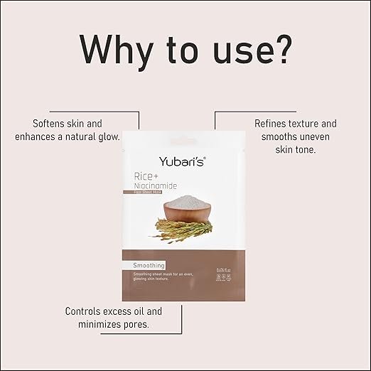 Infused with rice extract and niacinamide, this sheet mask is designed to brighten and smooth the skin, providing deep hydration and a radiant glow.